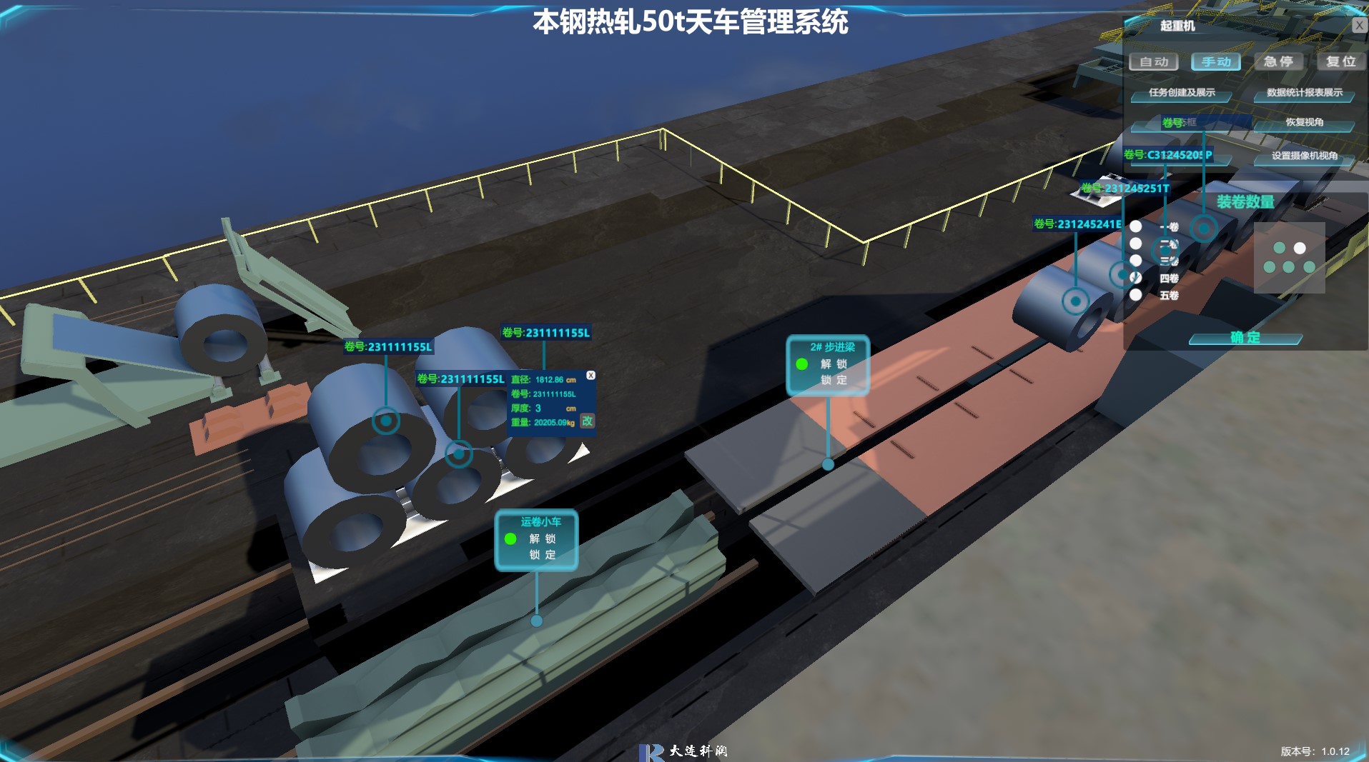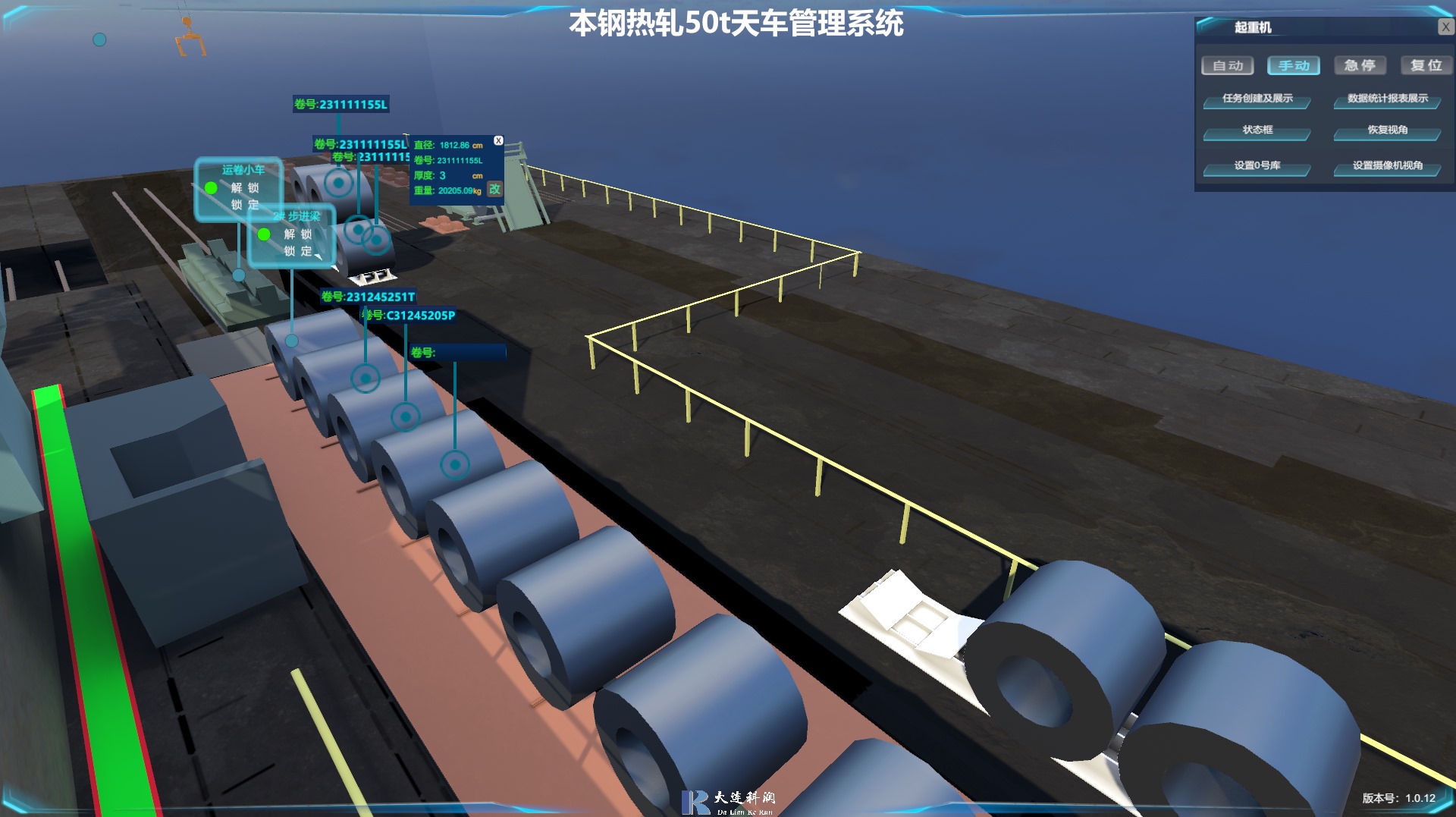 應用矢量變頻控制技術、定位技術和電子防搖技術來控制起重機運行,應用設備運行管理軟件、庫房管理系統來實現設備自主運行和物料管理,以中控室控制平臺、網絡遠端控制技術來實現近距離和遠端控制、監控起重機的操作,實現車間無人化管理。